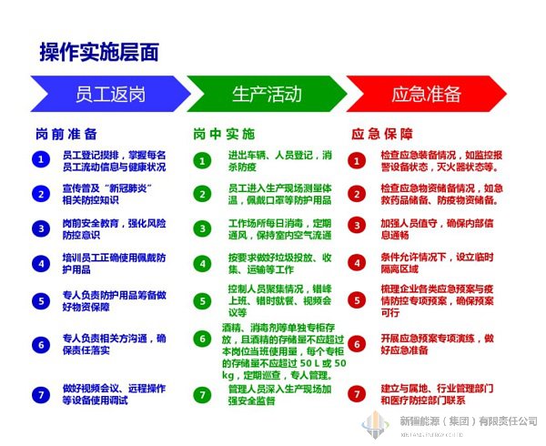 落实安全生产和疫情防控主体责任,建立人员健康档案,所有返京员工隔离期满方能复工;做好出入口执勤值守和安全生产应急值守工作,加强宣传教育,利用手机、网络课堂等方式开展全员安全生产和疫情防控教育培训。