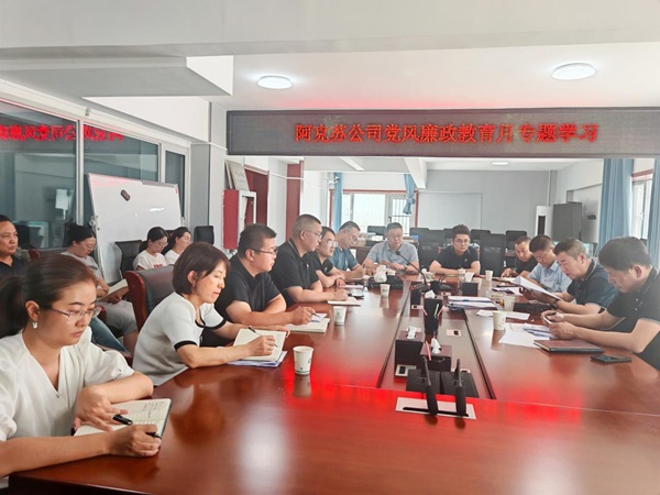 阿克苏公司党支部组织开展党纪学习专题党课,课上学习《中国共产党纪律处分条例》,集中观看警示教育专题片《持续发力 纵深推进》,不断加强党员干部职工党性锻炼和自身修养,将纪律意识和规矩意识内化于心、外化于行,保持清正廉洁的政治本色。