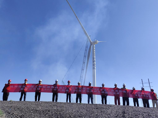 自4月3日首台风机吊装以来,立新能源公司科学统筹,精心组织,突出“党建+项目”引领新模式,在工地成立临时党支部,引导党员干部发挥先锋模范带头作用,克服地形起伏大、运输吊装难度高、风沙天气条件差等困难,历经122天圆满完成32台风机吊装工作,比原计划提前28天,为冲刺年度目标打下坚实基础。