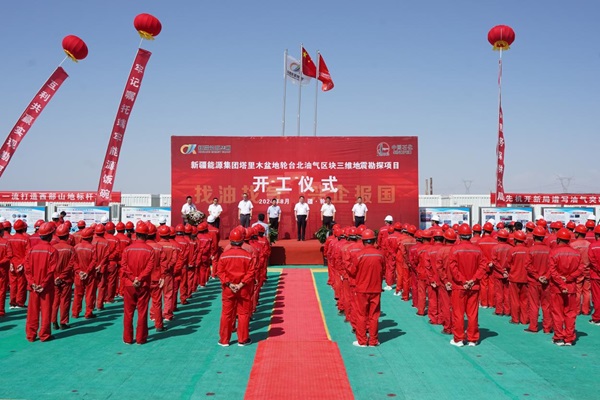 轮台县人民政府及相关部门,中石化石油工程地球物理有限公司胜利分公司,新疆能源(集团)石油天然气有限责任公司等相关人员参加开工仪式。