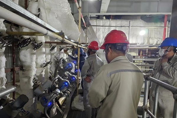 7月9日,辅汽系统吹管工作完成,炉侧供汽管道已具备投运条件,为锅炉酸洗提供了可靠、稳定的汽源。
