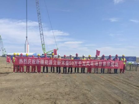 吊装作业前,立新能源公司组织风机供应商、监理单位、总承包单位、风机吊装专业分包单位召开首台风机吊装前工作动员部署会,进行吊装作业技术、安全再交底,确保作业操作流程规范、安全作业条件可靠;部署安排首台机组吊装安全文明施工及安装质量样板工作要求,确保项目风机安装高标准高要求顺利推进。