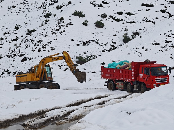 在受阻路段,部分道路因积雪重压垮塌,救援人员毫不畏惧,争分夺秒,连续奋战10小时,终于打通了通往肖热力牧点的“生命线”,为后续救援赢得宝贵时间。