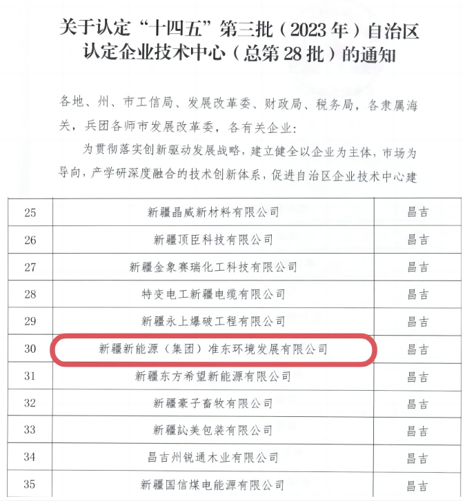 近日,新疆维吾尔自治区工业和信息化厅公布了《关于认定“十四五”第三批(2023年)自治区认定企业技术中心(总第28批)的通知》,经过严格审查、现场评审和网上公示,新疆新能源(集团)...