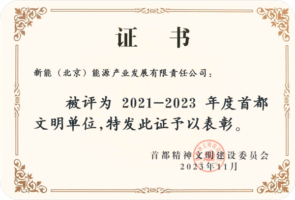 喜报!新能(北京)公司荣获“首都文明单位”称号