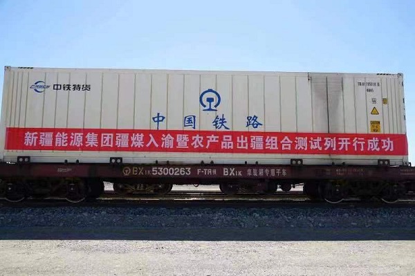 6月30日,51组满载保供任务的煤炭集装箱和2组新疆优质农产品冷链集装箱,由新疆哈密市哈密站发往重庆市小南垭站,这是新疆农副产品首次搭乘“疆煤外运”列车,实现了新疆农副产品和煤炭组合测试列车零的突破。