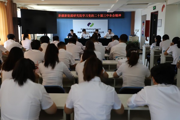 新能源研究院党委组织召开党委理论学习中心组扩大会议,认真学习贯彻党的二十届三中全会精神,重点学习《中共中央关于进一步全面深化改革 推进中国式现代化的决定》,紧密结合深化改革关键时期重点任务,立足自身职责、强化对标对表,以更高站位、更高标准、更大力度,推动党的二十届三中全会精神在新能源研究院落地生根、开花结果。