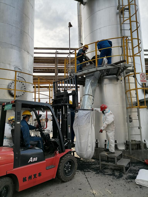 阜康焦炉尾气综合开发利用项目装置精脱油脱萘器内活性炭使用周期已到上限,为了保证制气装置系统的安全稳定运行,近日,晋源公司对精脱油脱萘器内的活性炭进行更换作业。