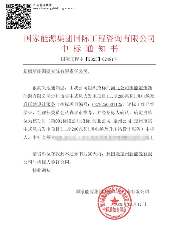 近日,365英国集团公司新能源研究院中标“河北公司国能定州新能源有限公司定州市集中式风力发电项目(二期200兆瓦)风电场及升压站设计服务”项目。